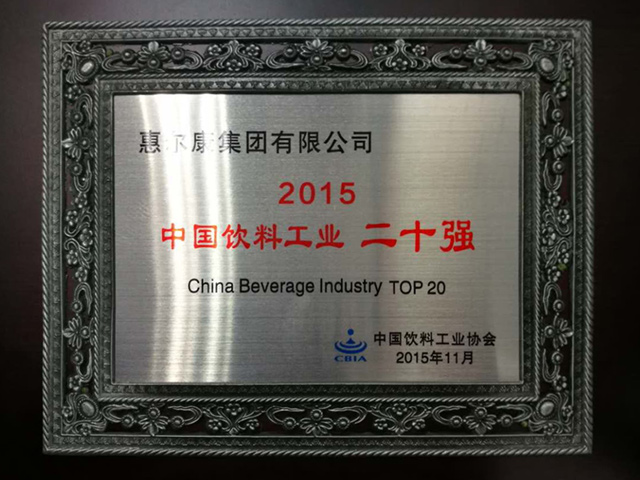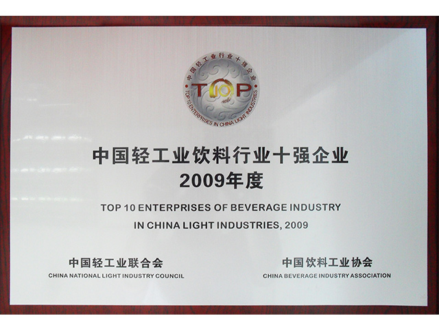 中国轻工业饮料企业十强企业牌匾