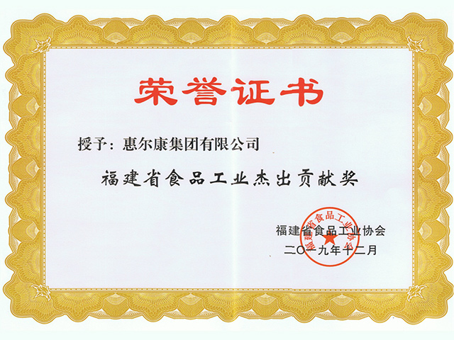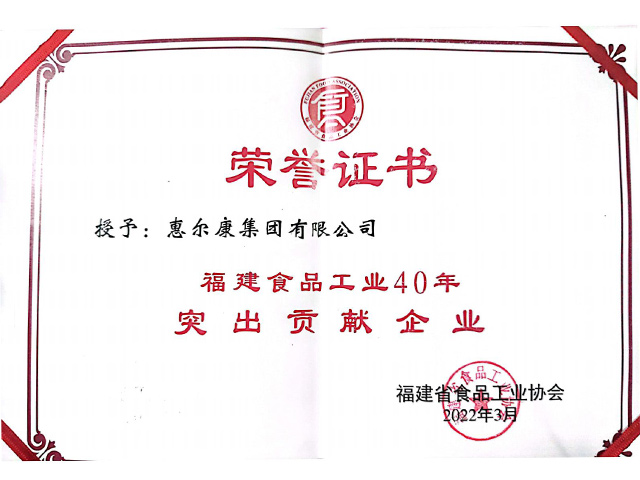 荣获福建省食物工业协会-福建食物工业40年突出孝顺企业